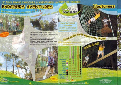 Moutiers les Mauxfaits 8km from Champ st Père This is great fun, particularly if you enjoy a challenge and have too much energy. They have made 6 circuits in the forest, for differing abilities, which require you to climb, Swing, grapple, rope slide etc from tree to tree- very exhilarating- There are also games for little ones, a paint ball section, pony rides and a splendid forest for walking. |