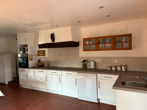 Ground floor : large sitting room (40 sqm) with open fireplace , kitchen-dining room (24 sqm) fitted with dishwasher, split level cooker, fridge, microwave, washroom with washing machine, shower-room and wc.